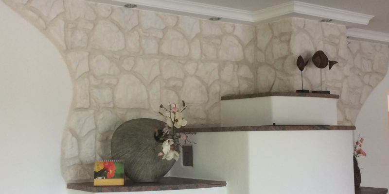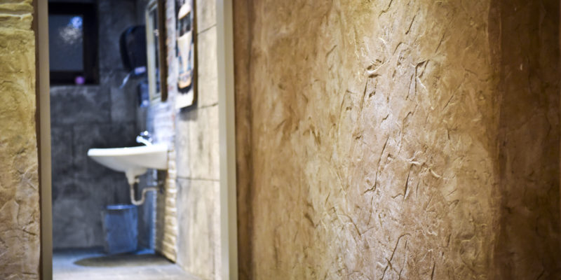 Die Dunkle Wand am Eingangsbereich wurde mit Stempel LESVOS hergestellt.